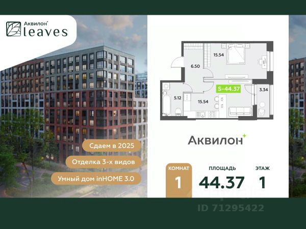 Купи квартиру в ЖК "Аквилон Ливз"! Отделка В квартире выполнена предчистовая отделка WhiteBox +Возможен дозаказ отделки в любом из 3 цветов: SAND, TERRA, GRAPHITE Отделка входит в стоимость квартиры в ДДУ ЖК "Аквилон Ливз" Жилой комплекс класса бизнес-лайт "Аквилон Leaves" воплощает идеальную синергию природы, технологий и дизайна. В одном из самых престижных районов Санкт-Петербурга мы создаем функциональную жилую среду, которая позволит максимально быстро и удобно решать бытовые вопросы, сохраняя ценное время для семьи и любимых занятий. -Малошумные лифты -Сквозные парадные -Светопрозрачные входные группы -Увеличенная высота первого этажа -Безбарьерная среда -Подземный паркинг Стандарты Группы Аквилон для вашей комфортной жизни Thermo-S экономия на коммунальных платежах за счет дополнительно утепленных стен, кровли и цоколя. Энергоэффективные окна с селективным покрытием и аргоновым заполнением Soundstop - дополнительная шумоизоляция внутренних перегородок и межэтажных перекрытий, шумозащитные окна, малошумные лифты Light-in - в квартирах устанавливаются широкоформатные окна, увеличены на 30%. Высота подоконников на уровне 60 см от пола. Vent-in - в каждой комнате есть клапаны индивидуальной вентиляции, которые обеспечивают приток свежего воздуха с улицы. inHOME умный дом в каждой квартире Интеллектуальная цифровая система, которая позволит дистанционно решать бытовые вопросы, управлять квартирой и экономить на оплате коммунальных услуг. В состав inHOME входят: IP-домофон, Face key, "умные" счетчики, датчики протечки, дистанционное отключение розеток, и т.д. Двор ваш личный парк Благоустройство двора от студии ландшафтного дизайна MEGABUDKA отсылает нас к образу зеленого листа. Современная архитектура гармонирует с окружающей средой, а экологические стандарты и "умные" системы обеспечивают ежедневный комфорт. -Зонирование на площадки для активного и спокойного отдыха. -Ландшафт с геопластикой и рельефом напоминает естественную красоту природных парков. -Всесезонные растения -Высаживаются взрослые деревья и кустарники Локация и инфраструктура Помимо разнообразной инфраструктуры, рядом с комплексом расположен Пулковский парк и сад "Дубовая роща". У жителей будут все возможности для отдыха на свежем воздухе. Велопрогулка, пробежка или летний пикник наслаждайтесь природой, не уезжая далеко загород. -10 мин. до м. Московская -15 мин. до м. Звездная -15 мин. до аэропорта Пулково -30 мин. до Невского пр. #zZw48z 1-комнатная квартира элитные на улице Среднерогатская в Санкт-Петербурге.