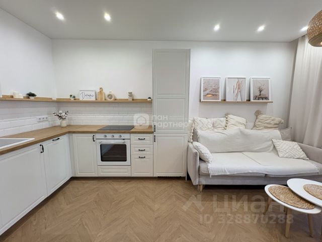 Просторная светлая кухня-гостиная 15,18 м.2, полностью оборудована всей необходимой мебелью и техникой. Вся мебель качественная, выполнена на заказ по индивидуальному проекту. Диван раскладывается в полноценное спальное место. В кухне-гостиной установлен кондиционер. Лоджия застекленная 3,28м2.