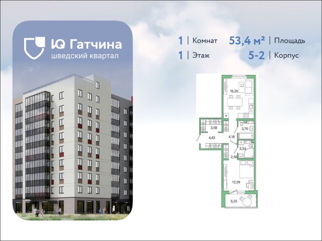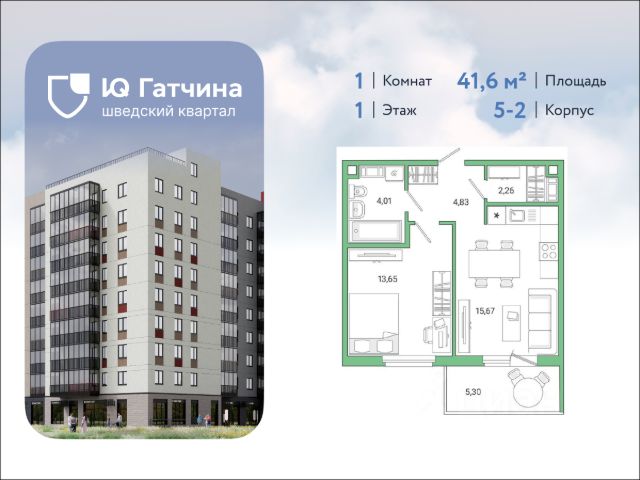 IQ Гатчина- жилой квартал комфорт -класса, в историческом пригороде Санкт-Петербурга городе Гатчина. Концепцию создания комплекса разрабатывало шведское архитектурное бюро Йоханнеса Товатта с европейским подходом к каждой детали. Транспортная доступность: 20 мин. на авто до КАД, 30 мин. до метро "Московская" и не больше часа до центра Санкт-Петербурга. В шаговой доступности от комплекса парки Гатчинского дворца, остановки общественного транспорта, а также ж/д станция "Татьянино". О проекте: комплекс имеет переменную высотность от 5-12 этажей, яркие фасады и безбарьерную среду. Места общего пользования выполнены по дизайн проекту, с современными бесшумными лифтами, колясочными и витражным остеклением. Все комнаты правильной квадратной формы, увеличенные окна с двойными стеклопакетами, высота потолков от 2,7 м2 до 3,02 м2 на последних этажах. Инфраструктура: на первых этажах комплекса работают супермаркеты, аптеки, салоны красоты и уютные кафе, прямо напротив жилого комплекса - крупный торговый центр. В квартале уже открыла свои двери современная школа на 825 мест и детский сад на 120 мест, а также в ближайшее время запланировано строительство второго детского сада. Благоустройство: квартал полностью имеет закрытые дворы, в которых каждый чувствует себя максимально безопасно, работает круглосуточное видеонаблюдение, доступ только для жителей и их гостей по системе IP домофония, концепция "дворы без машин", зеленые аллеи, ландшафтное озеленение, во дворах установлены современные игровые комплексы, спортивные площадки. Для владельцев животных предусмотрены лапамойки. Уникальный образовательный кластер: Гатчинский государственный университет (ГГУ), Государственный институт экономики, финансов, права и технологий, "Гатчинский педагогический колледж имени К.Д. Ушинского", ЧОУ "Первая академическая гимназия", МБОУ СОШ No12 "Центр образования", Детские сады No26 и No52 Первый дома комплекса уже сданы и заселены. В комплексе так же работает "Живи клуб", который объединяет жителей общими идеями и хобби. Купить 1-комнатную квартиру на 1 этаже в Гатчине.