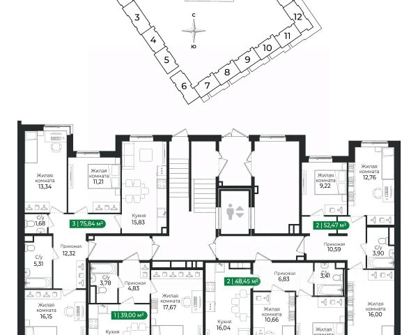В трех домах жилого комплекса "Ювента" представлено к продаже более тысячи квартир с количеством комнат от одной до трех (а также кварт