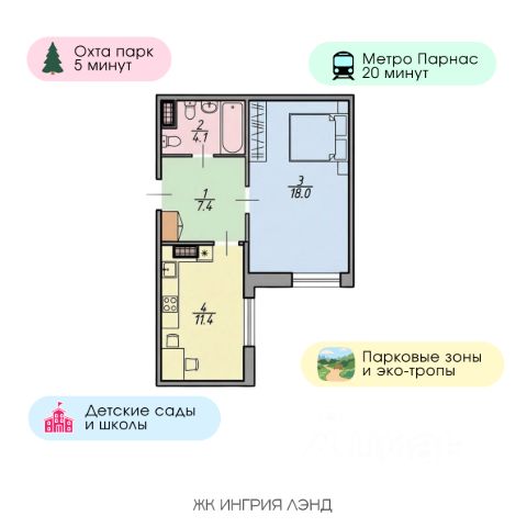 В радиусе трех-четырех километров от "Ювенты" инфраструктура более разнообразна: детские сады и школы, СЗГМУ им. Мечникова, поликлиника 97, областная клиническая больница, гипермаркеты "Лента", "Карусель", "Окей" и "К-Раута", торговые центры "Парк Хаус", "Гранд Каньон" и "Норд", магазин сети "Леруа Мерлен", крупный торгово-развлекательный комплекс "Мега Парнас" с гипермаркетами "Ашан", OBI и IKEA, кафе, ресторанами и детскими аттракционами, центр физкультуры и здоровья, конькобежный стадион.