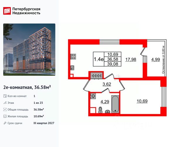 Продается уютная 1-комнатная квартира от застройщика в жилом комплексе "Univer City" в на юге Санкт-Петербурга. До метро можно добраться на транспорте всего за 30 минут. Удобная, классическая, функциональная европланировка, большая кухня-гостиная 15.29 м², вместительная прихожая 3.33 м². Общая площадь квартиры - 33.75 м², жилая 10.03 м², высота потолка 2.77 м. Квартира продается с отделкой "NORD LINE WHITE". Что особенного в ЖК "Univer City"? • Малоэтажное строительство • Скандинавские фасады с отделкой керамогранитом, акцентные входные группы • Закрытые внутренние дворы без машин • Пешеходный променад с тематическими зонами, еловый сквер и яблоневый сад • Univer Park, включая SetlSport и SetlKids, площадку для выгула собак и зоны отдыха • Инновационный Лицей Setl с оригинальной архитектурной концепцией и уникальной образовательной средой