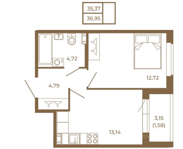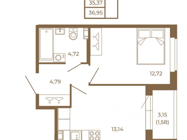 Предлагаем вашему вниманию уютную 1-комнатную квартиру 30.6 м2. , которая прекрасно подойдёт для студента, молодой девушки, новоиспечённой семьи или пенсионера.