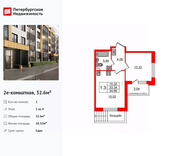 Продается 1-комнатная квартира в ЖК "Пулково Лейк" на 1 этаже. Общая площадь составляет 42.10 кв. м. Квартира с чистовой отделкой. Особенностью планировки является патио - это приватный дворик с зеленой оградой, который имеет прямой выход из квартиры. Жилой комплекс "Пулково Лейк" располагается по адресу Санкт-Петербург, Московский. Пулково Лейк - проект малоэтажной застройки на берегу озера на границе Московского и Пушкинского районов. Дома высотой всего 4 этажа, квартиры от уютных студий до трехкомнатных квартир для большой семьи. Широчайший выбор планировок, включая квартиры с мастер-спальнями, патио, каминами, саунами, двухуровневые квартиры. Школа, детские сады, парк на берегу озера и выезды на Пулковское и Петербургское шоссе. Расположение: • 5 мин на авто до Аэропорта Пулково; • 10 мин на авто до станций метро "Московская; • 10-15 мин на авто до городов Пушкина, Павловска и Гатчины; • 20 мин на авто до центра Санкт-Петербурга. Квартиры в проекте сдаются с предчистовой и чистовой отделкой Соmfоrt Stоnе и Соmfоrt Wооd по современным стандартам - Вы можете сами выбрать отделку, подходящую именно Вам. Дома оборудованы самыми современными инженерными системами и "Умным домом". В рамках проекта будет построена современная школа на 925 мест и 2 детских сада на 160 и 240 мест, выезды на Пулковское и Петербургское шоссе, а также храм рядом со сквером "Пулковский рубеж". Общественное пространство вдоль берега озера превратится во всесезонный парк, в котором найдется место для любых активностей от пробежек, катания на САПах и велосипедах до отдыха в шезлонгах и любования закатом солнца. Зимой будет работать каток, проложен лыжный маршрут, предусмотрено место для новогодней елки и горок для детей. Для Ваших питомцев - площадка для выгула собак. Преимущества: • Высота потолков от 2,6 до 4,5 м; • Уникальные планировки; • Парк на берегу озера; • Система "Умный дом"; • Дворы без машин; • Колясочная в парадной; • Видеонаблюдение в холлах, на первом этаже, в лифтах и в паркингах. Успейте приобрести квартиру на выгодных условиях! Чтобы узнать подробности, обращайтесь за консультацией по телефону.
