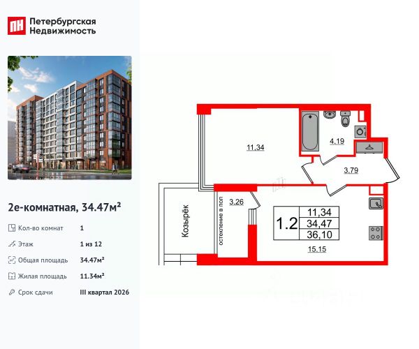 Продается уютная 1-комнатная квартира от застройщика в жилом комплексе "Титул в Московском" в престижном Московском районе. До метро можно добраться пешком всего за 25 минут. Удобная, классическая, функциональная европланировка, большая кухня-гостиная 15.15 м², вместительная прихожая 3.79 м². Общая площадь квартиры - 34.47 м², жилая 11.34 м², высота потолка 2.77 м. Квартира продается с отделкой "NORD LINE WHITE ВК NEW". Что особенного в ЖК "Титул в Московском"? • Престижный Московский район • Авторская архитектурная концепция • 2 центральные входные группы с ресепшн и лаундж-зонами • Кленовая аллея с арт-стеллой, цветочная аллея и сад трав • Уютные дворы-патио, площадки SetlKids и SetlSport • Инновационный Лицей Setl с оригинальной архитектурной концепцией и уникальной образовательной средой