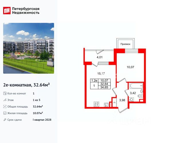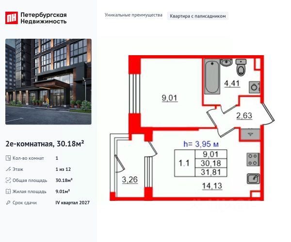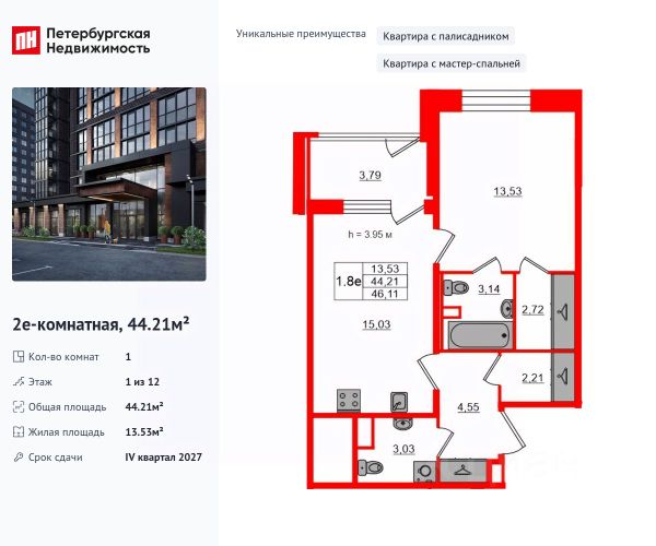 Просторная 1-комн. квартира с предчистовой отделкой в ЖК "Аквилон Ливз" на 1 этаже. Общая площадь: 44.28 кв.м., жилая: 12.01 кв.м., площадь просторной кухни-столовой: 15.92 кв.м. Все окна выходят на одну сторону. В квартире одна лоджия, один раздельный санузел. Высота потолков 2.75 м. Дом монолитный, многоподъездный, переменной этажности, от 9 до 12 этажей. Квартира находится в 1-й секции высотой 12 этажей в корпусе 1. На этаже 12 квартир. В подъезде 2 грузовых лифта. Начало строительства - 4 квартал 2022 года. В настоящее время строительство завершено, дом сдан в 1 квартале 2025 года. Оформление сделки по договору купли-продажи. Жилой комплекс класса бизнес-лайт "Аквилон Ливз" воплощает идеальную синергию природы, технологий и дизайна. Отделка White box, а также три вида чистовой отделки на выбор. Светопрозрачные входные группы обеспечат максимальное естественное освещение и безопасность. Система контроля, видеонаблюдение и синхронизация с "умной" системой inHOME 3.0 ограничат доступ на территорию комплекса для посторонних. — 15 минут до аэропорта Пулково — 10 минут до станции метро Звездная — Детский сад на 220 мест Безопасное пространство, закрытое от машин. Ландшафт, благодаря геопластике и рельефу напоминает естественную красоту природных парков. Ландшафтный дизайн сохранит эстетику пространства в любой сезон. В озеленении используют взрослые деревья, кустарники и цветы. #z2WwtF