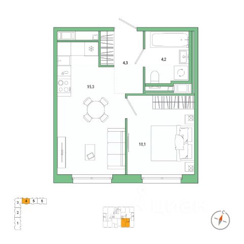 Однокомнатная квартира с удобной планировкой — идеальный вариант как для комфортного проживания, так и для сдачи в аренду. Квартира расположена на 1-м этаже 7-ми этажного корпуса. Площадь квартиры 32,1 кв.м., высота потолков — 2.8 м, что создает ощущение простора и свободы. Большой балкон 4 кв.м. можно использовать, как кабинет или адаптировать под место для хранения.