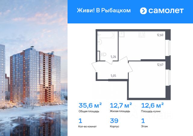 Строим кварталы для жизни с заботой о будущем. Предлагается 1-комнатная квартира комфорт-класса 34,93 кв.м в корпусе 39 на 1 этаже, в ЖК "Живи! В Рыбацком" Квартира с предчистовой отделкой. Доступность дополнительных опций уточняйте у застройщика. Приобрести квартиру возможно по специальным акциям от застройщика, с текущими условиями акций можно ознакомиться в блоке "Акций". Цена динамическая и может отличаться, уточняйте актуальность у застройщика. Квартал "Живи! В Рыбацком" в Невском районе Санкт-Петербурга расположен рядом с рекой Славянкой и парком. Всего 20 минут пешей прогулки — и вы у метро "Рыбацкое". Автомобилисты будут добираться до КАДа за десять минут. В квартале работают два детских сада, школа и кабинет врача. На первых этажах зданий открыты магазины, кафе и салоны красоты. Во дворе — зеленые бульвары, воркаут-площадка, спортивный и игровой кластеры. Для машин — подземный паркинг. Кирпично-монолитные дома с каменной облицовкой — воплощение долговечности и тепла. Есть в квартале и камерный 30-й корпус, в нем восемь этажей, 70 квартир и приватный двор-парк. В сквозных парадных — безбарьерная среда, помещения для хранения колясок и велосипедов и система видеонаблюдения.
