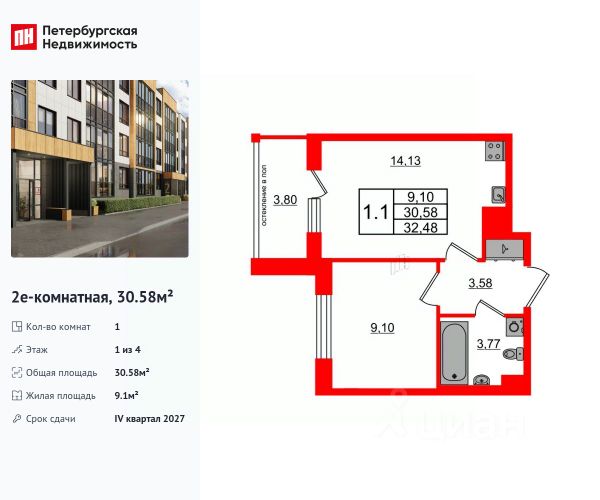 Добрый день! Продается ПОЛНОСТЬЮ УКОМПЛЕКТОВАННАЯ, ПРОСТОРНАЯ ОДНОКОМНАТНАЯ квартира в ЭКОЛОГИЧЕСКИ чистом районе Санкт-Петербурга.