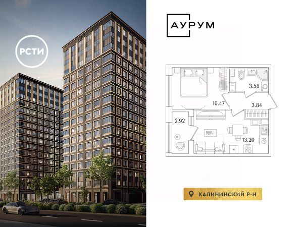 Продаётся 1к.кв. в ЖК Аурум от застройщика Группа компаний "РСТИ" (Росстройинвест). Квартира находится в 17 этажном доме, в Аурум - Корпус 1(С1,С2,С3) на 10 этаже. Общая площадь квартиры 35,12 кв.м. "Аурум" - это современное, яркое и функциональное пространство, где архитектура объединена с комфортом и эстетикой. Фасады "Аурум" впечатляют внешним видом. Проект создан в архитектурной мастерской Сергея Цыцина "АМЦ-Проект". Его ключевая идея — в создании стильного и заметного образа, который станет доминантой района и будет притягивать взгляды. Одно из знаковых пространств жилого комплекса "Аурум" — центральная входная группа. Это место, сочетающее множество ролей. Это и визуальный акцент и статусное фотогеничное пространство и территория отдыха и встреч для жителей. Внутри комплекса создана комфортная и современная жилая среда. Закрытый внутренний двор с креативным пространством, современным озеленением, выразительной геопластикой, большой игровой зоной, беговым маршрутом станет идеальным местом для игр, отдыха, прогулок и общения. Расположение комплекса обеспечивает удобный доступ к крупным магистралям Калининского района: проспекту Маршала Блюхера, Кондратьевскому, Пискаревскому и Полюстровскому проспектам. Около 15-20 минут на транспорте — и вы на станциях метро "Лесная" и "Площадь Ленина". В будущем запланировано строительство новых объектов, улучшающих транспортную доступность: трасса "М-7" с путепроводом, продление улицы Арсенальной, Арсенальный мост и тоннель под железнодорожными путями. Также планируется создание новых станций метро — Арсенальная, Площадь Калинина и Полюстровский проспект-1, что расширит возможности передвижения по городу.