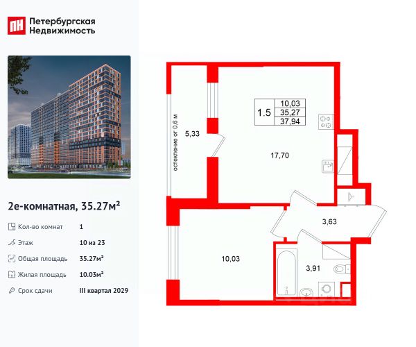 Продается 1-комнатная квартира в ЖК "Октябрьская набережная" на 10 этаже. Общая площадь составляет 35.50 кв. м. Квартира с чистовой отделкой . Жилой комплекс "Октябрьская набережная" располагается по адресу Санкт-Петербург, Невский. Октябрьская набережная - жилой комплекс на берегу Невы, который отличается живописными видами и удобным местоположением: в окрестностях ЖК есть всё необходимое для комфортной жизни. Расположение: • 2 минуты пешком до набережной Невы; • 7 минут до станции метро "Улица Дыбенко" на автомобиле; • 8 минут до Большого Обуховского моста на автомобиле; • 15 минут до ТРК "Лондон Молл" на автомобиле. Будущие жильцы могут обустроить квартиру по своему вкусу: предлагается 2 вида отделки - уютный темный "Comfort Wood" и легкий светлый "Comfort Stone". Отделка выполняется из качественных материалов: прочный ламинат с фактурой светлого дерева или белого камня, светлые обои под покраску, лаконичные межкомнатные двери. Вход в парадные расположен на уровне земли и создает доступную среду для пожилых людей, людей с ограниченными возможностями и мам с колясками. На цокольном этаже находятся кладовые, которые позволят освободить пространство квартиры от лишних вещей. Во всех парадных расположены колясочные, рядом с ними - велопарковки. На территории комплекса есть всё для любителей активного отдыха: спортивные площадки, уличные тренажеры, велодорожки, места для игры в баскетбол и волейбол. Спортсмены могут насладиться живописными видами во время пробежки вдоль набережной. В зелёных и облагороженных дворах есть всё и для семей с детьми: тематические площадки, детский сад и даже школа. Комфортная среда для питомцев - еще одно преимущество "Октябрьской набережной": рядом с домами находится площадка для выгула собак. Для удобства автомобилистов на территории комплекса устроены крытые паркинги с безопасными охраняемыми выездами и большим количеством машино-мест. В пешей доступности расположены супермаркеты, кафе, парикмахерские, отделения банков. Преимущества: • Первая береговая линия • Двор без машин • Доступная среда • Развитая инфраструктура • Школа и детский сад во дворе • Близость к метро Успейте приобрести квартиру на выгодных условиях! Чтобы узнать подробности, обращайтесь за консультацией по телефону.