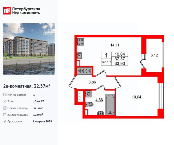 Продаётся 1-комн. квартира площадью 41 кв.м на 10 этаже 15 этажного дома (Корпус 1, Секция 2) проекта ПИК Янинский лес. Светлый просторный подъезд на уровне земли, функциональная планировка, большие окна, c отделкой. Жилой квартал "Янинский лес" возводится в районе Янино-1 Ленинградской области. Автобусная остановка находится в 3 минутах пешком. Проект расположен вплотную к восточной границе Санкт-Петербурга - в 4 минутах от КАД. До метро "Ладожская" - 23 минуты на общественном транспорте. До исторического центра города можно доехать за 25 минут на автомобиле. "Янинский лес" - масштабный проект из 32 жилых корпусов, где будет всё для комфортной жизни. Здесь предусмотрены надземные паркинги, откроются детские сады, школа и поликлиника. Кроме этого, появятся места, в которых можно проводить свободное время: ледовая арена и торговый центр площадью больше 3000 м². Жилой район строится по всем правилам ПИК-Стандарта: в зелёных дворах-парках появятся современные детские и спортивные площадки, пешеходный бульвар и другие места для отдыха. На первых этажах разместятся магазины, кафе и другие сервисы. Во дворах не будет автомобилей, а для гостей предусмотрены парковочные места. Проект окружают лесные массивы. В пешей доступности находится Ржевский лесопарк: летом там можно гулять и собирать грибы, а зимой кататься на лыжах. Также рядом расположен памятник природы Колтушские высоты - парк с обустроенными экотропами и веломаршрутом. А главное место притяжения местных жителей - озеро с обустроенным местом для пикников. Артикул 1048927 (Застройщик ООО "СПЕЦИАЛИЗИРОВАННЫЙ ЗАСТРОЙЩИК"ЭКСТРАГРАД") [cn_sbp_1828259]
