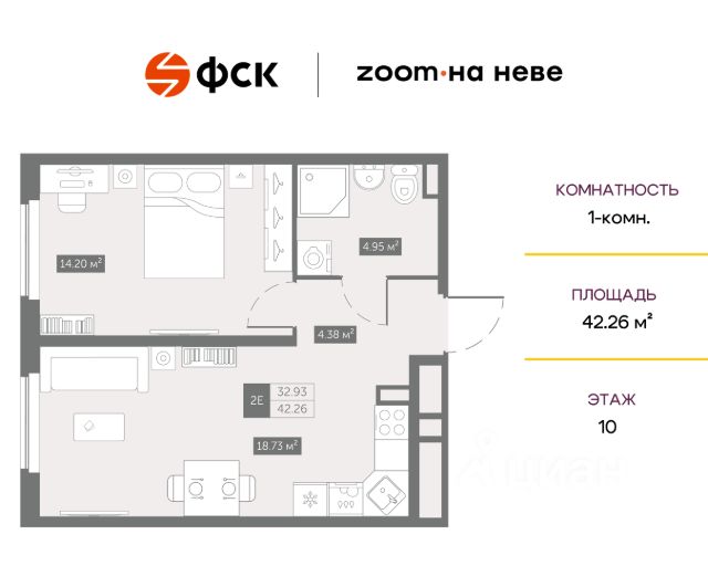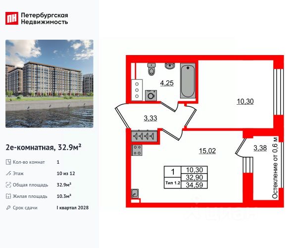 - кухня 9, 2 кв. м с лоджией 2,5 кв. м , комната 17,3 кв. м.;