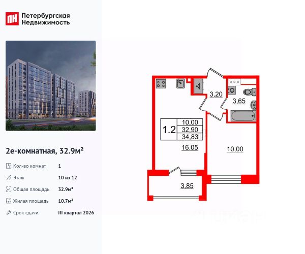 Продается уютная однокомнатная квартира в одном из комфортных районов Санкт-Петербурга, на улице Щербакова, 14к1. Квартира расположена на 10-м этаже 10-этажного панельного дома, построенного в 1994 году. Общая площадь составляет 35.7 кв. м, из которых жилая — 16 кв. м, а кухня — 8.4 кв. м. Высота потолков — 2.6 метра.