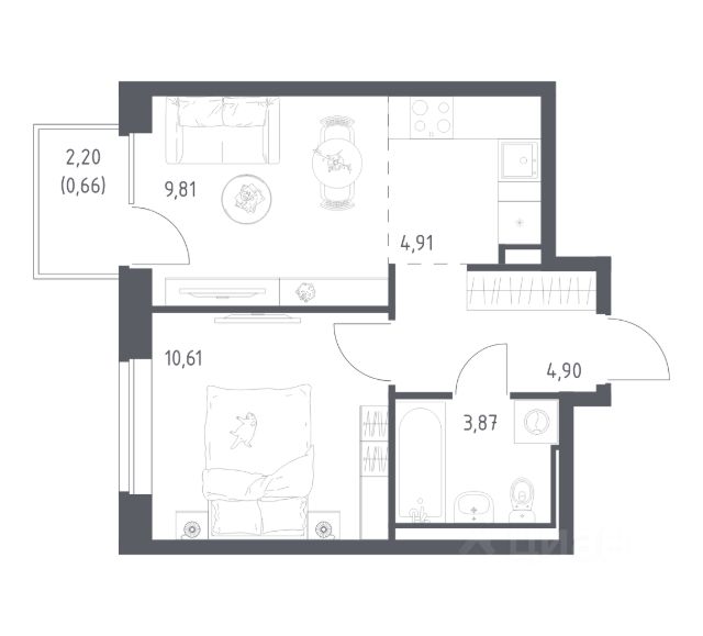 В продаже 1-комнатная квартира в корпусе 6-7 ЖК 'Живи! В Рыбацком'. Квартира располагается на 10 этаже, общая площадь 39.17 м2.