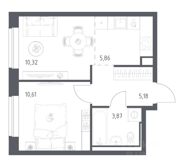 В продаже 1-комнатная квартира в корпусе 6-7 ЖК 'Живи! В Рыбацком'. Квартира располагается на 10 этаже, общая площадь 32.24 м2.