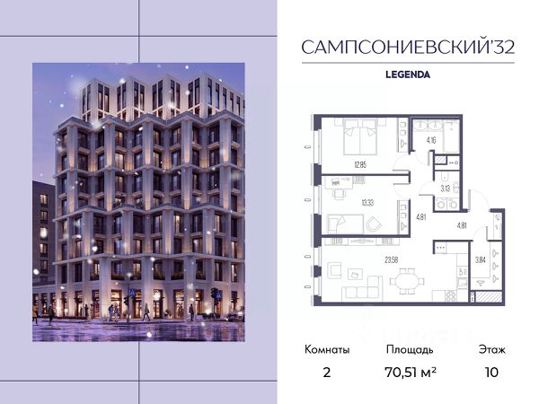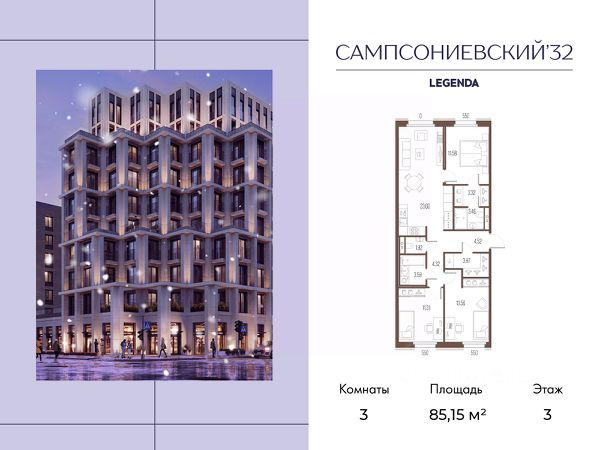 Квартира с одной спальней в комплексе "Сампсониевский 32" от LEGENDA на 10 этаже. -Общая площадь: 44.55 кв.м. -Жилая: 12.61 кв.м. -Площадь просторной кухни-столовой: 19.72 кв.м. -Высота потолков 2.7 м. Все окна выходят на одну сторону. В квартире один совмещенный санузел. ЖК "Сампсониевский, 32" квартал бизнес-класса в Выборгском районе Санкт-Петербурга недалеко от набережной Большой Невки и Петроградской стороны. Отличают комплекс каскадные фасады с большой площадью остекления, видовые квартиры с террасами. Современные инженерные и технические решения, повышающие качество жизни TechnoBox включают в себя: стационарный и удаленный контроль дома, систему Air Design, обеспечивающую чистый воздух без лишнего шума, мультисервисную сеть, объединяющую коммуникационные системы. Квартиры сдаются с предчистовой отделкой: выровнены пол и стены, проведена электрика, предусмотрена шумоизоляция, встроенная система вентиляции. В каждой квартире установлена взломостойкая входная дверь, окна со специальным термоизолированным алюминиевым профилем. В ЖК "Сампсониевский, 32" много вариантов планировок: квартиры с террасой, мастер-спальней, ванной комнатой с окном, гардеробной комнатой. Двор закрыт от транспорта, здесь будут зоны с дизайнерским оформлением для игр и отдыха. Срок сдачи 4 квартал 2026 года. В отапливаемом подземном паркинге 298 мест, спуститься туда можно на лифте из своей квартиры. Комплекс находится на границе крупных районов, рядом с набережными, которые ведут в Приморский, Калининский и Центральный районы, а через Сампсониевский, Гренадёрский и Кантемировский мосты можно попасть в Петроградский район. До станции метро "Выборгская" 900 м, до станции метро "Петроградская" 2,6 км. Финляндский вокзал находится в 2,5 км от ЖК, а Западный скоростной диаметр (ЗСД) в 10 км. Рядом с ЖК находится несколько гимназий, общеобразовательных школ и детских садов. Здесь много медицинских учреждений, кафе, ресторанов, торговых центров, гипермаркетов. Меньше чем в 1 км от ЖК Сампсониевский и Выборгский сады, а в 2 км находится Ботанический сад, набережная реки Карповки с качелями и зонами отдыха у воды.