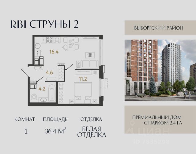 Квартира с одной спальней в комплексе "Сампсониевский 32" от LEGENDA на 10 этаже.