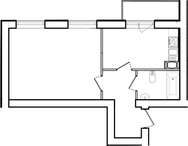 Жилая площадь 13.91 м2, кухня 13.92 м2, балконов - 1, окна выходят во двор.