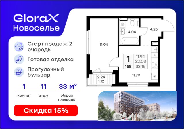 Продаётся 1-комн. квартира площадью 33,9 кв.м на 11 этаже 12 этажного дома (Корпус 3.3, Секция 1) проекта ПИК Таллинский парк. Светлый просторный подъезд на уровне земли, функциональная планировка, большие окна, предчистовая отделка. "Таллинский парк" - проект в Ленинградской области, в районе Новоселье. До станции метро "Проспект Ветеранов" - 15 минут на автомобиле, а до КАД можно доехать всего за 4 минуты. "Таллинский парк" включает 16 жилых домов, детский сад и школу. В проекте появится центральный сквер с обильным озеленением, а через весь квартал протянутся широкие пешеходные бульвары. В зелёных дворах-парках будут оборудованы современные детские и спортивные площадки, обустроены места для отдыха. На первых этажах разместятся магазины, кафе и другие сервисы. Проектом предусмотрены персональные кладовые помещения - это доступный, экономичный и удобный способ хранения сезонных и крупногабаритных вещей. Освободите свою квартиру для полноценной жизни. Район Новоселье активно развивается в городском формате: здесь уже работают детские сады, школа и магазины. Для любителей зимних видов спорта открыта круглосуточная ледовая арена Ice Rink. За покупками и развлечениями также можно быстро доехать: 10 минут - и вы в Аутлете Fashion House Таллинское, гипермаркетах Лента, Леруа Мерлен и Окей. В 10 минутах на автомобиле находится Финский залив, на берегу которого расположились объекты культурного наследия. Рядом - Константиновский парк с отреставрированным дворцом, а чуть дальше расположена усадьба Знаменка. В великолепном Петергофе вы будете уже через 20 минут. Артикул 909550 (Застройщик ООО "СПЕЦИАЛИЗИРОВАННЫЙ ЗА СТРОЙЩИК "СТРОЙ-ЭКСПЕРТ ") [cn_sbp_1560109]