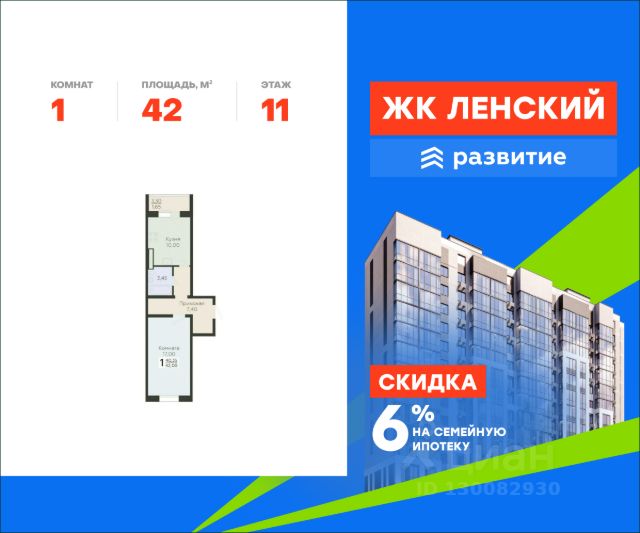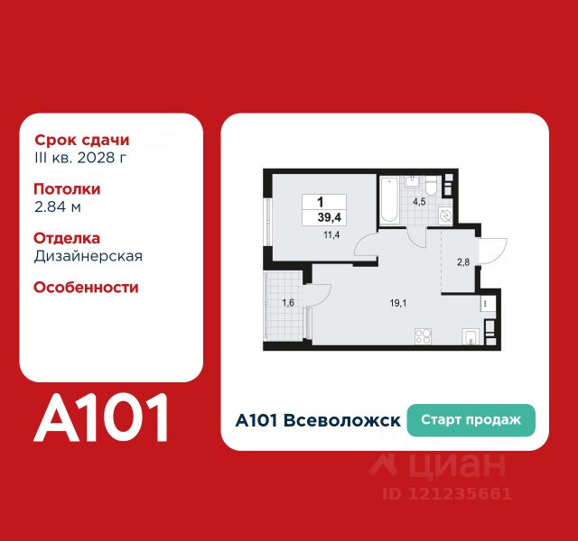 В продаже квартира площадью 42.00 кв. м с отделкой white box на 11 этаже 16 этажного дома. Квартира находится в 4834 корпусе: Жилой комплекс "Ленский" - место, где встречаются природа и городская среда, а умиротворение загородной жизни сочетается с комфортом. Проект располагается на северо-востоке Санкт-Петербурга, в Южном микрорайоне Всеволожска, в 16 км от КАД, с удобным выездом на Колтужское шоссе и Дорогу Жизни. В его состав входят два 18-этажных корпуса с видами на Колтушские высоты, сервисы повседневной инфраструктуры, собственный приватный двор, просторный паркинг для жителей и гостей. Девелопер проекта - федеральный застройщик ГК "Развитие". Транспортная доступность На автомобиле: • 30 мин до станции метро "ул. Дыбенко" • 35 мин до центра Санкт-Петербурга Архитектура Архитектурный облик отличается современным дизайном. Панорамные окна с большой площадью остекления наполняют квартиры светом, актуальная финская технология Peikko защищает квартиры от промерзания даже в северном климате. Дома прочные, долговечные, их конструкция гарантирует тёплый микроклимат зимой, прохладу летом и отличную звукоизоляцию. Планировочные решения Функциональные планировки отличаются простотой и эргономичностью, пространство эффективно используется даже на небольшой площади. К кухне примыкает просторная лоджия с панорамным остеклением, во всех двух- и трехкомнатных квартирах - по два санузла. Все квартиры сдаются с отделкой white box, которая позволяет существенно сократить стоимость и сроки ремонта. По желанию доступны варианты чистовой отделки под ключ: "комфорт" и "бизнес" с использованием современных материалов. Благоустройство - приватный двор без машин; - всесезонное озеленение; - спортивный корт для футбола и баскетбола; - детские площадки с мягким покрытием; - площадка для настольного тенниса; - скамейки и беседки для отдыха по всему периметру; - прогулочные и велосипедные дорожки в тени деревьев; - сквозные парадные с большими окнами; - просторная входная группа на уровне земли; - колясочные помещения; - торговая галерея в шаговой доступности. Окружение - 5 парков: заповедник "Колтушские высоты", парк "Софиевка", "Румболовский", "Кенша", Державинский и Алексеевский парки. За 5-10 минут можно добраться транспортом до Песчанки и Петропавловского парка. Ковалевский лесопарк выделяется прекрасными экотропами, зонами для пикников и велодорожками, а Ждановские озера - благоустроенными пляжами; - рядом Колтушинский фреш-маркет с фермерскими продуктами и крупный ТЦ "Юбилейный", где работают более 70 магазинов, кинотеатр и фуд-корт; - 10 детских садов, начальная и средняя школы, центры дополнительного образования, творческие секции; - в ближайшей доступности фитнес-центры, бассейн, теннисный клуб и даже центр верховой езды; - культурные и знаковые места: Музей-усадьба "Приютино", музей "Дом Авиаторов", мемориальный комплекс "Дорога Жизни", многочисленные пешеходные маршруты.