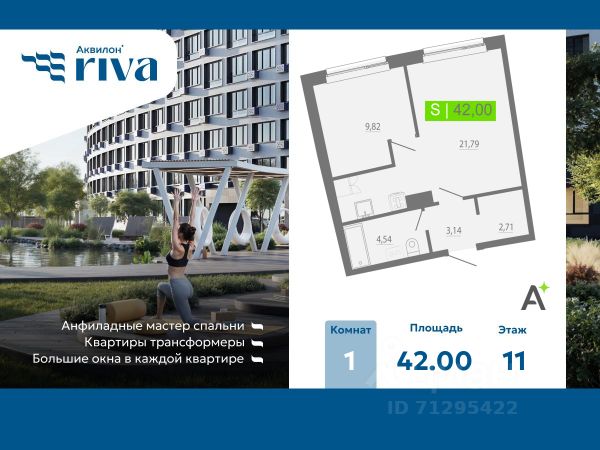 Просторная 1-комн. квартира с отделкой в ЖК "Аквилон RIVA" на 11 этаже. Общая площадь: 30.98 кв.м., площадь просторной кухни-столовой: 13.88 кв.м. Высота потолков 2.73 м. Дом монолитный, трехподъездный, переменной этажности, от 16 до 20 этажей. Квартира находится в 1-й секции высотой 20 этажей в корпусе 1. На этаже 15 квартир. В подъезде 2 пассажирских и 1 грузовой лифт. Окончание строительства - 4 квартал 2027 года. Оформление сделки по договору долевого участия. В шаговой доступности от дома расположена станция метро (расстояние по прямой) "Девяткино" (1.9 км). ЖК "Аквилон RIVA" - жилой комплекс комфорт класса у метро Девяткино от Группы Аквилон В самом сердце двора раскинулся собственный водоём — не просто украшение, а часть вашей повседневной жизни. Летом — это благоустроенная набережная для прогулок, отдыха в тени деревьев и тихих вечеров у воды. А зимой водоём превращается в залитый каток — место, где звучит смех, скользят коньки и рождаются семейные традиции. Здесь каждое время года раскрывает свой характер. Зона уединения: Места для занятия йогой и медитаций Мульти скворечники Качели с подсветкой для уютных бесед Высокие скамейки на набережной для отдыха и чтения на свежем воздухе Активная зона: Развивающие детские площадки для разных возрастов Спортивные площадки с зоной Ворк-аут, Столы для настольного тенниса Площадка для пляжного волейбола Преимущества Увеличенные окна с заполнением аргоном Корзины под кондиционеры Сити-боксы вместо балконов Безбарьерная среда Бесшумные скоростные лифты Контроль доступа на территорию и видеонаблюдение Отделка квартир Чистовая отделка в трех цветовых решениях: Sand, Terra и Graphite Дозаказ для любой квартиры Стандарты Группы Аквилон для вашей комфортной жизни Thermo-S экономия на коммунальных платежах за счет дополнительно утепленных стен, кровли и цоколя. Энергоэффективные окна с селективным покрытием и аргоновым заполнением Soundstop - дополнительная шумоизоляция внутренних перегородок и межэтажных перекрытий, шумозащитные окна, малошумные лифты Light-in - в квартирах устанавливаются широкоформатные окна, увеличены на 30%. Высота подоконников на уровне 60 см от пола. Vent-in - в каждой комнате есть клапаны индивидуальной вентиляции, которые обеспечивают приток свежего воздуха с улицы. inHOME умный дом в каждой квартире Интеллектуальная цифровая система, которая позволит дистанционно решать бытовые вопросы, управлять квартирой и экономить на оплате коммунальных услуг. В состав inHOME входят: IP-домофон, Face key, "умные" счетчики, датчики протечки, дистанционное отключение розеток, и т.д. Паркинг Отдельно стоящий 3-х уровневый паркинг Электрозарядки на территории ЖК Локация м. Девяткино 5 минут Центр города - 20 минут КАД 5 минут. #zMUMAe