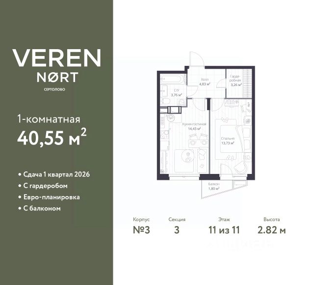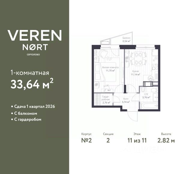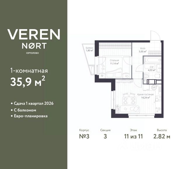 Продается просторная 1-комнатная квартира от застройщика в жилом комплексе "Бионика Заповедная" в динамичном Приморском районе. До метро можно добраться на транспорте всего за 11 минут. Удобная, классическая, функциональная европланировка, большая кухня-гостиная 17 м², вместительная прихожая 3.6 м². Общая площадь квартиры - 34.76 м², жилая 10.08 м², высота потолка 2.77 м. Квартира продается с отделкой "Норд Лайн светлый плюс". Что особенного в ЖК "Бионика Заповедная"? • Оазис в городе 3 минуты пешком до Новоорловского заказника (140 ГА) • Захватывающие виды из окон на хвойный лесопарк • Всесезонный "Заповедный парк" во дворе площадью 23000 кв.м. • 5 единых входных групп с авторским дизайном и лаундж-зонами, сити-виллы на первых этажах с палисадниками и высотой потолков до 4 м • Места притяжения: фонтан "Бионика", спортивный кластер со скейт-парком, фотозоны с арт-объектами