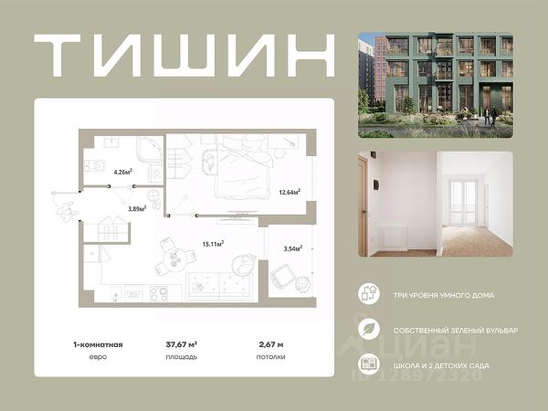 Продаётся 1-комнатная квартира 183, общей площадью 28 кв.м., на 11 этаже. Дом комфорт-класса, 12 этажей, в окружении леса и малоэтажной застройки. Проект с умным домом. РАСПОЛОЖЕНИЕ И БЛАГОУСТРОЙСТВО ЖК "Тишин" расположен в поселке Новоселье в окружении природы — рядом находятся Гореловский лес и Шунгеровский заказник, что делает его идеальным для любителей чистого воздуха и покоя. Особенность комплекса — это благоустроенные дворы с зонами для отдыха, спорта и игр, а также центральный бульвар протяженностью 1 км с велодорожками, спортивными площадками и зонами для прогулок. На территории комплекса предусмотрены детские сады, школа, коммерческие помещения и паркинги, что создает комфортную среду для жизни. Три уровня умного дома 1. Уровень квартира • Управление освещением, климатом и водоснабжением через мобильное приложение или голосового помощника. • Система защиты от протечек воды с автоматическим перекрытием стояков. • Пожарная сигнализация с уведомлениями в режиме реального времени. 2. Уровень дома • Онлайн-доступ к видеонаблюдению, включая просмотр архива. • Контроль доступа на этажах через СКУД (систему контроля и управления доступом). 3. Уровень ЖК • Единое мобильное приложение Wise City для общения с управляющей компанией, оплаты счетов и сервисных заявок. ГК "Едино" — один из лидеров рынка недвижимости Северо-Запада с 24-летним опытом. Компания известна высокими стандартами качества и соблюдением сроков сдачи объектов. В цифрах: Более 50 реализованных проектов. 60 000+ счастливых жителей. Мы организуем для вас бесплатный трансфер до офиса продаж и обратно!
