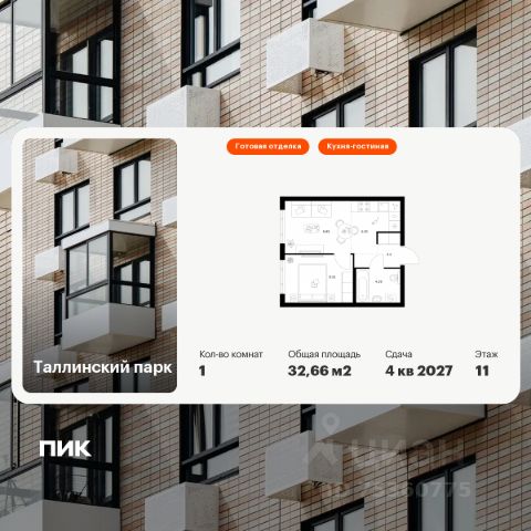 Продаётся 1-комн. квартира площадью 32,66 кв.м на 11 этаже 12 этажного дома (Корпус 4.1, Секция 3) проекта ПИК Таллинский парк. Светлый просторный подъезд на уровне земли, функциональная планировка, большие окна, c отделкой. "Таллинский парк" - проект в Ленинградской области, в районе Новоселье. До станции метро "Проспект Ветеранов" - 15 минут на автомобиле, а до КАД можно доехать всего за 4 минуты. "Таллинский парк" включает 16 жилых домов, детский сад и школу. В проекте появится центральный сквер с обильным озеленением, а через весь квартал протянутся широкие пешеходные бульвары. В зелёных дворах-парках будут оборудованы современные детские и спортивные площадки, обустроены места для отдыха. На первых этажах разместятся магазины, кафе и другие сервисы. Проектом предусмотрены персональные кладовые помещения - это доступный, экономичный и удобный способ хранения сезонных и крупногабаритных вещей. Освободите свою квартиру для полноценной жизни. Район Новоселье активно развивается в городском формате: здесь уже работают детские сады, школа и магазины. Для любителей зимних видов спорта открыта круглосуточная ледовая арена Ice Rink. За покупками и развлечениями также можно быстро доехать: 10 минут - и вы в Аутлете Fashion House Таллинское, гипермаркетах Лента, Леруа Мерлен и Окей. В 10 минутах на автомобиле находится Финский залив, на берегу которого расположились объекты культурного наследия. Рядом - Константиновский парк с отреставрированным дворцом, а чуть дальше расположена усадьба Знаменка. В великолепном Петергофе вы будете уже через 20 минут. Артикул 1026648 (Застройщик ООО "СПЕЦИАЛИЗИРОВАННЫЙ ЗА СТРОЙЩИК "СТРОЙ-ЭКСПЕРТ ") [cn_sbp_1807108]
