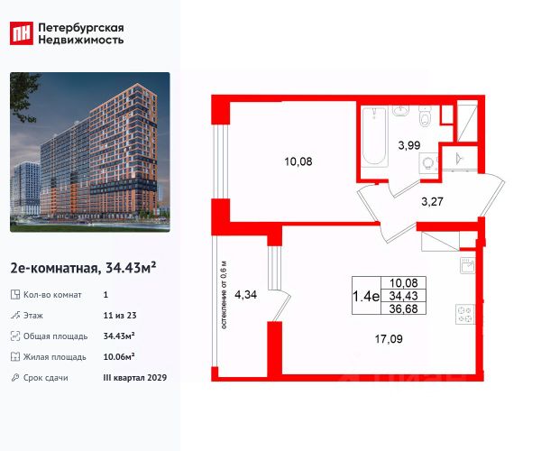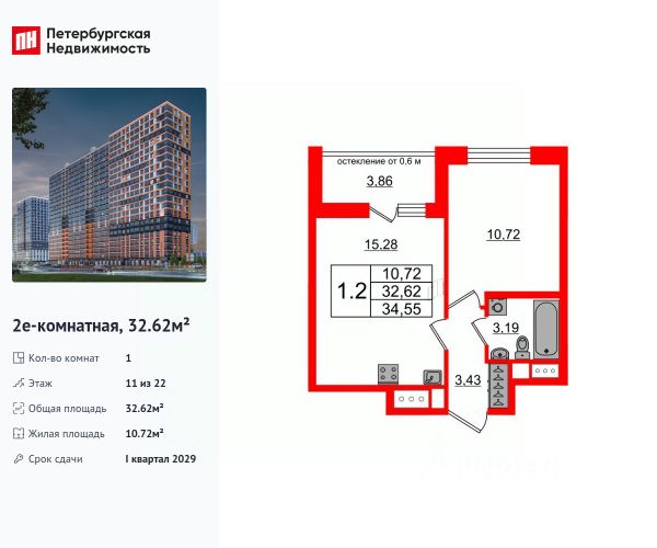 Строим кварталы для жизни с заботой о будущем. Предлагается 1-комнатная квартира комфорт-класса 32,26 кв.м в корпусе 33 на 11 этаже, в ЖК "Новое Колпино"