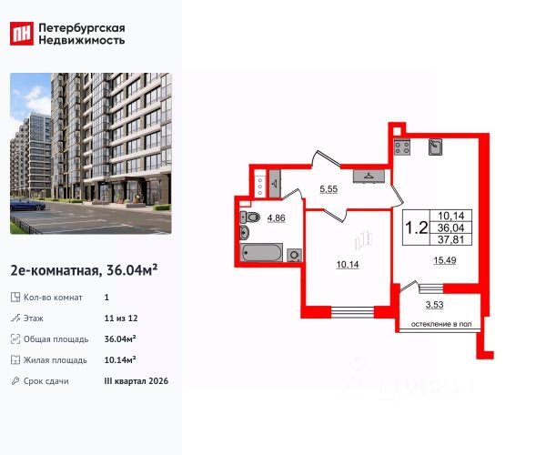 Продается просторная 1-комнатная квартира от застройщика в жилом комплексе "Титул в Московском" в престижном Московском районе. До метро можно добраться пешком всего за 25 минут. Удобная, классическая, функциональная европланировка, большая кухня-гостиная 15.49 м², просторная прихожая 5.55 м². Общая площадь квартиры - 36.04 м², жилая 10.14 м², высота потолка 2.77 м. Квартира продается с отделкой "NORD LINE WHITE ВК" Что особенного в ЖК "Титул в Московском"? • Престижный Московский район • Авторская архитектурная концепция • 2 центральные входные группы с ресепшн и лаундж-зонами • Кленовая аллея с арт-стеллой, цветочная аллея и сад трав • Уютные дворы-патио, площадки SetlKids и SetlSport • Инновационный Лицей Setl с оригинальной архитектурной концепцией и уникальной образовательной средой