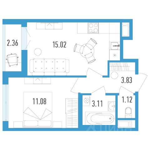 Продаётся 1-комнатная квартира в строящемся доме (Дом 1), срок сдачи: IV-кв. 2026, общей площадью 35.62 кв.м., на 11 этаже. ЖК AEROCITY Club - уютный среднеэтажный жилой комплекс комфорт-класса в п. Шушары Пушкинского района. Проект ориентирован на молодых и активных людей, стремящихся к комфорту и независимости. Это третий по счету жилой комплекс, который наша компания возводит в рамках квартальной застройки южных границ Санкт-Петербурга. Первый дом введен в эксплуатацию, идет заселение. Проект задает новый стандарт качества и организации пространства доступного жилья. Рядом с ЖК AEROCITY Club введен в эксплуатацию и готовится к открытию современный трехэтажный детский сад, идет строительство комбинированного детского сада и начальной школы, общеобразовательной школы на 1650 мест, предусмотрено строительство детской и взрослой поликлиник. Есть планы по созданию своей парковой зоны и строительству линии скоростного трамвая. ЖК AEROCITY Club- комфортно удален от высотной уплотнительной застройки исторической части Шушар. Геометрия здания в форме двух крыльев с внутренней дворовой территорией повышает приватность и безопасность его жителей. Благодаря грамотно спланированной квартальной застройке, жителям не придется тратить много времени на повседневные задачи. Все необходимое уже возводится внутри района.