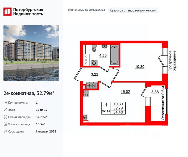 Цена действует при 100% оплате и на определенные ипотечные программы. Подробности — в отделе продаж по телефону. Продаётся 1-комнатная квартира в ЖК "Большая Охта" на 12 этаже. Общая площадь составляет 35.90 кв. м. Квартира с white box отделкой. Жилой комплекс "Большая Охта" располагается по адресу Санкт-Петербург, Красногвардейский. "ЛСР. Большая Охта" - проект бизнес-класса, в Красногвардейском районе между Якорной и Партизанской улицами, рядом с центром Петербурга. Престижный комплекс с удобной пешеходной и транспортной доступностью. Особенности квартиры высокие потолки и увеличенные окна. Горизонтальная разводка труб водоснабжения и отопления и вынесенные в холлы счетчики сохранят эстетичный дизайн комнат. Встроенные клапаны инфильтрации воздуха будут поддерживать чистоту и свежесть воздуха. Расположение: • 8 мин на авто до станции метро "Новочеркасская"; • 10 мин на авто до станции метро "Ладожская"; • 10 мин на авто до Таврического сада и исторического центра города; • 13 мин на авто до станции метро "Чернышевская"; • 25 мин на авто до КАД. Пространство внутри комплекса разделено на функциональные зоны: тематические, спортивные, уединенные. Все площадки окружают взрослые хвойные и лиственные деревья, подобранные с учетом роста, эстетики и сезонного цветения. Расширенная инфраструктура комплекса продумана до мелочей. Внутри квартала есть все необходимое для жизни с комфортом и удовольствием - детские сады и школы, магазины, площадки для спорта и отдыха, фитнес-залы, модные кофейни и общественные летние веранды. Преимущества: • Подземный паркинг и кладовые помещения; • Двор без машин; • Система "Умный дом" (в т.ч. управление домофоном со смартфона); • Пост охраны и консьерж; • Индивидуальный тепловой пункт; • Колясочные в каждой парадной; • Зарядка для электромобилей. Успейте приобрести квартиру на выгодных условиях! Чтобы узнать подробности, обращайтесь за консультацией по телефону.