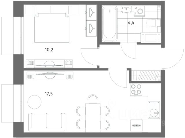 Однокомнатная квартира от застройщика с предчистовой отделкой в ЖК "Новая Земля" на 12 этаже. Общая площадь: 31.64 кв.м., жилая: 9.76 кв.м., площадь просторной кухни-столовой: 14.01 кв.м. Все окна выходят на одну сторону. В квартире один совмещенный санузел. Высота потолков 2.85 м. Квартира находится в корпусе 1.7. Дом монолитный, одноподъездный, высотой 22 этажа. На этаже 9 квартир. В подъезде 2 пассажирских и 1 грузовой лифт. Окончание строительства - 4 квартал 2028 года. Оформление сделки по договору долевого участия. Новая Земля — проект LEGENDA в локации морской набережной Васильевского острова, где уже сегодня формируется многообещающее и перспективное место для жизни и инвестиций. Проект состоит из двух очередей, расположенных в непосредственной близости, но имеющих идеологически разный подход к проектированию и ассортиментному предложению. Первая очередь, где квартиры уже в продаже, наполнена компактными функциональными и эстетичными сьютами в комплектации TechnoBox, подходящими для активной аудитории, предпочитающей больше времени проводить в городе. Транспортная доступность обеспечена благодаря близости выезда на ЗСД, который позволяет быстро добраться как до центра города, так и до других районов Санкт-Петербурга. Архитектурная концепция проекта задает новый стандарт для этой локации. Дизайн фасадов, большие окна без импостов, современные инженерные решения — всё это создаёт атмосферу комфортного и эстетичного пространства, отвечающего самым высоким требованиям. В проекте представлена новая линейка планировочных решений, созданных по принципам отельного проектирования. Сьюты от LEGENDA — это уникальная работа с пространством, сочетающая сверхфункциональность и удобство, чистоту линий и стилистический минимализм. Планировочные решения в рамках первой очереди проекта будут поделены на несколько сегментов, отличающихся размерами, функциональной наполненностью и отвечающих потребностям различных жителей проекта.