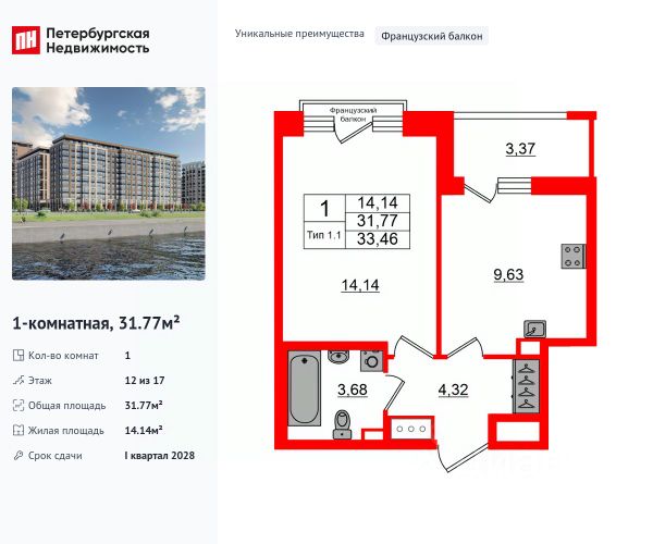 Цена со скидкой до 30% в прямой продаже от застройщика — только в этом месяце. При покупке апартаментов - паркинг за полцены. На все апартаменты действует беспроцентная рассрочка. Купите на распродаже! Покупка недвижимости в Zoom на Неве сейчас со скидкой до 30% позволит через 2 года получить доход до 6 300 000 руб. Роскошные виды на Неву. 1-к апартамент в комплексе класса бизнес-лайт Zoom на Неве на 12-м этаже. Общая площадь 33,81. Без отделки. Zoom на Неве расположен в новом месте силы рядом с центром города на первой линии Октябрьской набережной в Невском районе, всего в 7 км от исторической части Санкт-Петербурга. Большой выбор эргономичных и максимально продуманных планировок позволит каждому найти вариант по душе. Панорамные виды на Неву, благоустроенные дворы, детская игровая комната, подземный паркинг, коммерческие зоны на первом этаже, это и многое другое делает Zoom на Неве идеальным местом для жизни. Особенности: - Панорамные виды на Неву и город; - 10 мин. до Парка Строителей, 15 мин. до Лондон-молла, Ленты, Максидома, 15 мин. до метро "ул. Дыбенко", 12 мин. до КАД, 10 мин. до центра; - Единая архитектурная концепция. Сдержанные и монументальные фасады в неоклассическом стиле; - Парадный лобби для жильцов. Единый вход в комплекс с администратором, зоной ресепшн и охраной, зоной для бесконтактной доставки посылок и еды; - Подземный отапливаемый паркинг с доступом из парадной; - Доступно 3 варианта отделки на выбор: черновая, предчистовая (White Box) и чистовая; - Зоны отдыха для взрослых и детей, Wi-Fi-покрытие во дворе и в паркинге, зоны для питомцев, арт-объекты и много другое. В шаговой доступности вся необходимая инфраструктура от детских садов и школ до супермаркетов и салонов красоты; - Все происходящее контролируется видеокамерами, а покой внутренней территории и безопасность ваших детей гарантируется полным отсутствием транспорта во дворах в концепции "без машин".
