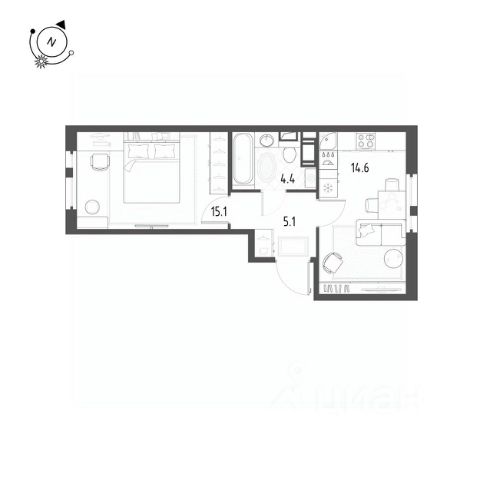 Продается квартира 702, по адресу г. Санкт-Петербург, поселок Шушары, Школьная улица, стр.1, корпус ЖК Монография в Монография на 12 этаже, с площадью 35.1 м2.