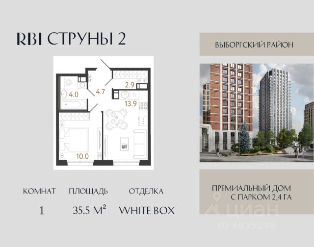 Продается 1-комн. квартира на 12-м этаже в проекте комфорт-класса GloraX Парголово. Общая площадь лота составляет 36,52 кв. м, из которых 11,45 кв. м отведено под жилую и 15,21 кв. м под кухонную зону. Номер квартиры - 103. Преимущества: - Квартира комфорт-класса - Зеленый район, Шуваловский парк в 20 мин. пешком - 10 мин. до КАД, 15 мин. до ЗСД - 5 эт. паркинг на 451 м/м - Закрытые дворы с видеонаблюдением - Детские площадки с геопласткой и бизиборадми - Сады и школы в шаговой доступности - Спортивные площадки и велодорожки - Собственный комьюнити-центр - Келлеры для хранения - Коммерческие помещения на 1 этажах GloraX Парголово — масштабный проект комфорт-класса в Выборгском районе Санкт-Петербурга. Место, продуманное до мелочей, где все, что необходимо — рядом. Архитектурно-пространственное решение отличается лаконичностью и строгостью и придает проекту свой характер. Внутренние дворы закрыты от внешнего мира, создавая приватную территорию для жителей. Живите на природе, но с комфортом мегаполиса. Десять минут на велосипеде или полчаса пешком — и вы окажетесь в одном из культовых мест отдыха петербуржцев: Шуваловском парке, Орловском заказнике с их чистыми карьерами или на Суздальских озерах. До ж/д станции "Парголово" 7 минут на автомобиле, до метро Проспект Просвещения 25 минут, КАД 10 минут, ЗСД 15 минут. В шаговой доступности остановка общественного транспорта. В шаговой доступности — собственные школы и детские сады. Здесь все создано для максимального комфорта каждого жителя. Приватное пространство внутреннего двора с беседками с розетками для работы и отдыха, зеленый двор с уютным многоуровневым освещением, детскими эко-площадками и спортивными workout создает неповторимую атмосферу, заряжающую энергией на новые свершения. Квартиры сдаются без отделки. Цена указана при 100% оплате или стандартной ипотеке. Узнайте подробности в Отделе продаж.
