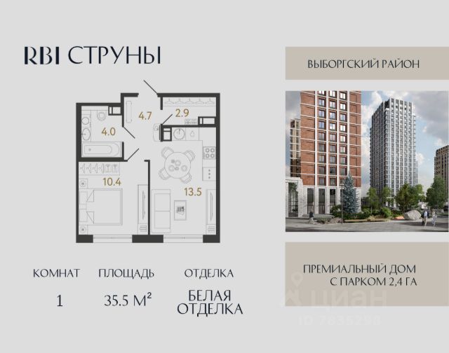 Продается 1-комн. квартира на 12-м этаже в проекте комфорт-класса Парголово. Общая площадь лота составляет 39,99 кв. м, из которых 10,42 кв. м отведено под жилую и 17,89 кв. м под кухонную зону. Номер квартиры - 115. Преимущества: - Квартира комфорт-класса - Зеленый район, Шуваловский парк в 20 мин. пешком - 10 мин. до КАД, 15 мин. до ЗСД - 5 эт. паркинг на 451 м/м - Закрытые дворы с видеонаблюдением - Детские площадки с геопласткой и бизиборадми - Сады и школы в шаговой доступности - Спортивные площадки и велодорожки - Собственный комьюнити-центр - Келлеры для хранения - Коммерческие помещения на 1 этажах Парголово — масштабный проект комфорт-класса в Выборгском районе Санкт-Петербурга девелопера GloraX. Место, продуманное до мелочей, где все, что необходимо — рядом. Архитектурно-пространственное решение отличается лаконичностью и строгостью и придает проекту свой характер. Внутренние дворы закрыты от внешнего мира, создавая приватную территорию для жителей. Живите на природе, но с комфортом мегаполиса. Десять минут на велосипеде или полчаса пешком — и вы окажетесь в одном из культовых мест отдыха петербуржцев: Шуваловском парке, Орловском заказнике с их чистыми карьерами или на Суздальских озерах. До ж/д станции "Парголово" 7 минут на автомобиле, до метро Проспект Просвещения 25 минут, КАД 10 минут, ЗСД 15 минут. В шаговой доступности остановка общественного транспорта. В шаговой доступности — собственные школы и детские сады. Здесь все создано для максимального комфорта каждого жителя. Приватное пространство внутреннего двора с беседками с розетками для работы и отдыха, зеленый двор с уютным многоуровневым освещением, детскими эко-площадками и спортивными площадками создает неповторимую атмосферу, заряжающую энергией на новые свершения. Квартиры сдаются без отделки. Узнайте подробности в Отделе продаж.