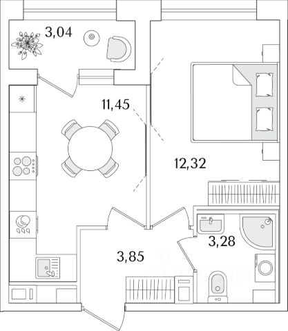 Квартира находится в 17 этажном доме, в Аурум - Корпус 1(С1,С2,С3) на 13 этаже. Общая площадь квартиры 32,46 кв.м.