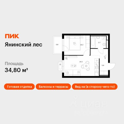 Продаётся 1-комн. квартира площадью 35,8 кв.м на 13 этаже 15 этажного дома (Корпус 4, Секция 1) проекта ПИК Янинский лес. Светлый просторный подъезд на уровне земли, функциональная планировка, большие окна, c отделкой. Жилой квартал "Янинский лес" возводится в районе Янино-1 Ленинградской области. Автобусная остановка находится в 3 минутах пешком. Проект расположен вплотную к восточной границе Санкт-Петербурга - в 4 минутах от КАД. До метро "Ладожская" - 23 минуты на общественном транспорте. До исторического центра города можно доехать за 25 минут на автомобиле. "Янинский лес" - масштабный проект из 32 жилых корпусов, где будет всё для комфортной жизни. Здесь предусмотрены надземные паркинги, откроются детские сады, школа и поликлиника. Кроме этого, появятся места, в которых можно проводить свободное время: ледовая арена и торговый центр площадью больше 3000 м². Жилой район строится по всем правилам ПИК-Стандарта: в зелёных дворах-парках появятся современные детские и спортивные площадки, пешеходный бульвар и другие места для отдыха. На первых этажах разместятся магазины, кафе и другие сервисы. Во дворах не будет автомобилей, а для гостей предусмотрены парковочные места. Проект окружают лесные массивы. В пешей доступности находится Ржевский лесопарк: летом там можно гулять и собирать грибы, а зимой кататься на лыжах. Также рядом расположен памятник природы Колтушские высоты - парк с обустроенными экотропами и веломаршрутом. А главное место притяжения местных жителей - озеро с обустроенным местом для пикников. Артикул 1049812 (Застройщик ООО "СПЕЦИАЛИЗИРОВАННЫЙ ЗАСТРОЙЩИК"ЭКСТРАГРАД") [cn_sbp_1828302]