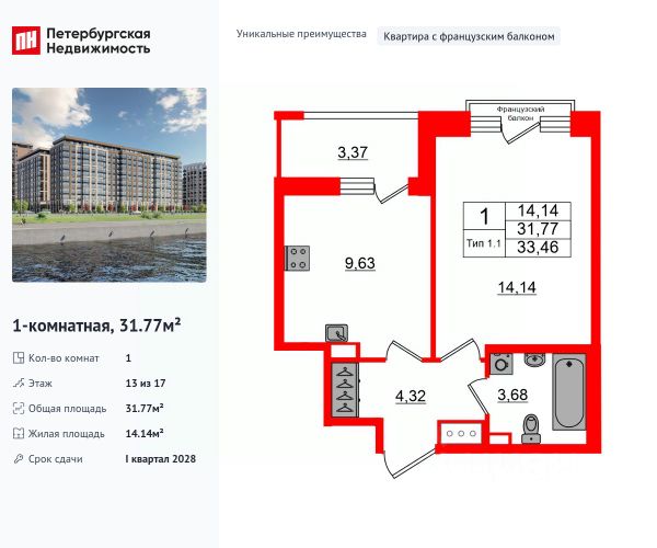 Цена со скидкой до 30% в прямой продаже от застройщика — только в этом месяце. При покупке апартаментов - паркинг за полцены. На все апартаменты действует беспроцентная рассрочка. Купите на распродаже! Покупка недвижимости в Zoom на Неве сейчас со скидкой до 30% позволит через 2 года получить доход до 6 300 000 руб. Роскошные виды на Неву. 1-к апартамент в комплексе класса бизнес-лайт Zoom на Неве на 13-м этаже. Общая площадь 40,3. Предчистовая отделка. Zoom на Неве расположен в новом месте силы рядом с центром города на первой линии Октябрьской набережной в Невском районе, всего в 7 км от исторической части Санкт-Петербурга. Большой выбор эргономичных и максимально продуманных планировок позволит каждому найти вариант по душе. Панорамные виды на Неву, благоустроенные дворы, детская игровая комната, подземный паркинг, коммерческие зоны на первом этаже, это и многое другое делает Zoom на Неве идеальным местом для жизни. Особенности: - Панорамные виды на Неву и город; - 10 мин. до Парка Строителей, 15 мин. до Лондон-молла, Ленты, Максидома, 15 мин. до метро "ул. Дыбенко", 12 мин. до КАД, 10 мин. до центра; - Единая архитектурная концепция. Сдержанные и монументальные фасады в неоклассическом стиле; - Парадный лобби для жильцов. Единый вход в комплекс с администратором, зоной ресепшн и охраной, зоной для бесконтактной доставки посылок и еды; - Подземный отапливаемый паркинг с доступом из парадной; - Доступно 3 варианта отделки на выбор: черновая, предчистовая (White Box) и чистовая; - Зоны отдыха для взрослых и детей, Wi-Fi-покрытие во дворе и в паркинге, зоны для питомцев, арт-объекты и много другое. В шаговой доступности вся необходимая инфраструктура от детских садов и школ до супермаркетов и салонов красоты; - Все происходящее контролируется видеокамерами, а покой внутренней территории и безопасность ваших детей гарантируется полным отсутствием транспорта во дворах в концепции "без машин".