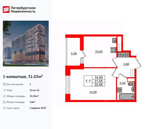 • ✓ В базе Циан 65 1-комнатных квартир на 14 этаже рядом с метро Рыбацкое
