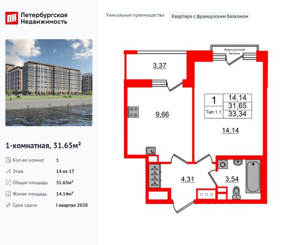 Цена со скидкой до 30% в прямой продаже от застройщика — только в этом месяце. На апартаменты действует беспроцентная рассрочка. Роскошные виды на Неву. 1-к апартамент в комплексе класса бизнес-лайт Зум на Неве на 14-м этаже. Общая площадь 38,7. Без отделки. Зум на Неве расположен в новом месте силы рядом с центром города на первой линии Октябрьской набережной в Невском районе, всего в 7 км от исторической части Санкт-Петербурга. Большой выбор эргономичных и максимально продуманных планировок позволит каждому найти вариант по душе. Панорамные виды на Неву, благоустроенные дворы, детская игровая комната, подземный паркинг, коммерческие зоны на первом этаже, это и многое другое делает Зум на Неве идеальным местом для жизни. Особенности: - Панорамные виды на Неву и город; - 10 мин. до Парка Строителей, 15 мин. до Лондон-молла, Ленты, Максидома, 15 мин. до метро "ул. Дыбенко", 12 мин. до КАД, 10 мин. до центра; - Единая архитектурная концепция. Сдержанные и монументальные фасады в неоклассическом стиле; - Парадный лобби для жильцов. Единый вход в комплекс с администратором, зоной ресепшн и охраной, зоной для бесконтактной доставки посылок и еды; - Подземный отапливаемый паркинг с доступом из парадной; - Доступно 3 варианта отделки на выбор: черновая, предчистовая (White Box) и чистовая; - Зоны отдыха для взрослых и детей, Wi-Fi-покрытие во дворе и в паркинге, зоны для питомцев, арт-объекты и много другое. В шаговой доступности вся необходимая инфраструктура от детских садов и школ до супермаркетов и салонов красоты; - Все происходящее контролируется видеокамерами, а покой внутренней территории и безопасность ваших детей гарантируется полным отсутствием транспорта во дворах в концепции "без машин".