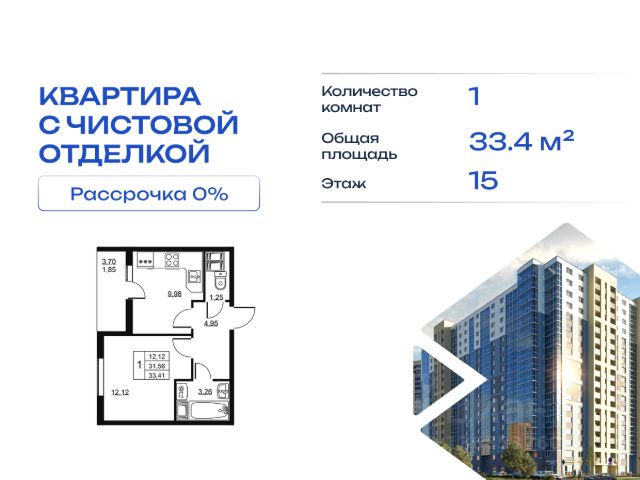 Продаётся 1-комнатная квартира в сданном доме (Тихая, 13к1 (Дом 13 Корпус 1)), срок сдачи: III-кв. 2023, общей площадью 33.9 кв.м., на 15 этаже. ЖК "Стороны света" - современный жилой комплекс комфорт-класса в пос.Бугры Ленинградской области. Состоит из четырех корпусов, имеющих тематические названия - "Север" , "Юг" , "Запад" и "Восток". Общее количество квартир - 2294, в каждой из которых будет выполнена качественная отделка под ключ. Ст. метро "Девяткино", "пр.Просвещения" и "Парнас" в 15 минутах езды, 2 удобных выезда на КАД, развитая система наземного транспорта. Ж/Д станция "Девяткино", автовокзал "Северный" Инфраструктура В пределах района находятся крупные магазины МЕГА Парнас, гипермаркет О`КЕЙ, АШАН, IKEA, ТЦ "Гранд Каньон", фитнес-центры, развлекательные заведения и др. Благоустройство Обустроенная придомовая территория, детский городок с безопасным покрытием, спортивные площадки с тренажерами для взрослых, устройство дорожек, прогулочных зон, озеленение площадью 14 000 кв.м. Природа Рядом живописные озера "Кавголовское", "Хепоярви" и "Большое". Базы отдыха и курорты "Игора", "Северный склон", "Охта парк". Тематический парк "Изумрудное озеро". Парк семейного отдыха "Зубровник"