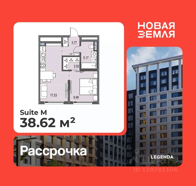 Однокомнатная квартира с предчистовой отделкой в ЖК "Новая Земля" на 15 этаже. Общая площадь: 31.24 кв.м., жилая: 9.18 кв.м., площадь просторной кухни-столовой: 13.82 кв.м. Все окна выходят на одну сторону. В квартире один совмещенный санузел. Высота потолков 2.85 м. Квартира находится в корпусе 1.8. Дом монолитный, одноподъездный, высотой 15 этажей. На этаже 8 квартир. В подъезде 2 пассажирских и 1 грузовой лифт. Окончание строительства - 4 квартал 2028 года. Оформление сделки по договору долевого участия. Новая Земля — проект LEGENDA в локации морской набережной Васильевского острова, где уже сегодня формируется многообещающее и перспективное место для жизни и инвестиций. Проект состоит из двух очередей, расположенных в непосредственной близости, но имеющих идеологически разный подход к проектированию и ассортиментному предложению. Первая очередь, где квартиры уже в продаже, наполнена компактными функциональными и эстетичными сьютами в комплектации TechnoBox, подходящими для активной аудитории, предпочитающей больше времени проводить в городе. Транспортная доступность обеспечена благодаря близости выезда на ЗСД, который позволяет быстро добраться как до центра города, так и до других районов Санкт-Петербурга. Архитектурная концепция проекта задает новый стандарт для этой локации. Дизайн фасадов, большие окна без импостов, современные инженерные решения — всё это создаёт атмосферу комфортного и эстетичного пространства, отвечающего самым высоким требованиям. В проекте представлена новая линейка планировочных решений, созданных по принципам отельного проектирования. Сьюты от LEGENDA — это уникальная работа с пространством, сочетающая сверхфункциональность и удобство, чистоту линий и стилистический минимализм. Планировочные решения в рамках первой очереди проекта будут поделены на несколько сегментов, отличающихся размерами, функциональной наполненностью и отвечающих потребностям различных жителей проекта.