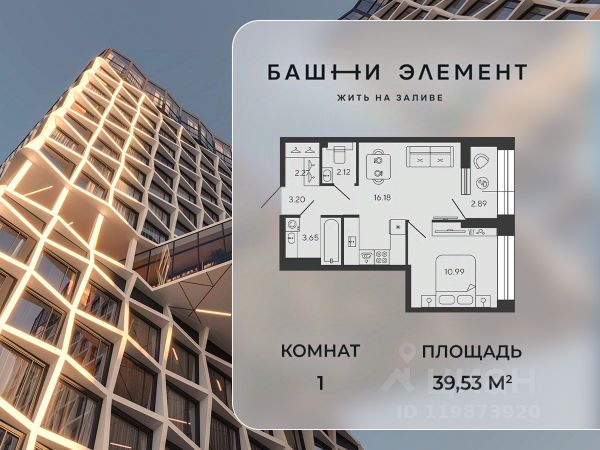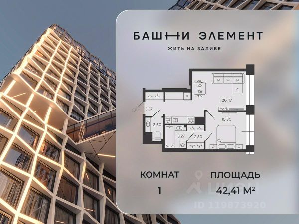Квартира 645 в корпусе Titan проекта бизнес-класса "Башни Элемент". "Башни Элемент" новый жилой проект бизнес-класса на Васильевском острове от девелоперской компании "ELEMENТ". В его составе 5 башен, две из которых соединены первым в Санкт-Петербурге "небесным мостом" с клубной инфраструктурой. " Первая линия Финского залива (южная часть намыва Васильевского острова), 80% квартир с видом на воду Футуристичная архитектура от "А.Лен" 5 разновысотных башен: CARBON, CUPRUM, TITAN, PLATINA и WOLFRAM (от 18 до 22 этажей) 1026 квартир от студий до 6-комнатных планировок формата "евро", в башнях TITAN и PLATINA 12 видовых пентхаусов Многофункциональный зал для событий, гостиная с кухонной зоной и террасой, коворкинг с "тихими" кабинетами, залы для йоги и персональных тренировок, комната для медитаций, кинозал, библиотека с гостиной и появятся в клубном пространстве "небесного моста" на площади 1000 м2 В стилобатной части проекта "ELEMENT" создаст инфраструктуру, ориентированную в том числе на поколение "альфа" IT-школу с мультимодальным обучением, образовательно-развлекательный кластер, творческие мастерские, а также семейный центр с рестораном и фитнес-клуб с 25-метровым бассейном, тренажерным залом и фитнес-зоной Ландшафтный парк со спортивными зонами, детскими площадками и местами для отдыха площадью 2600 м2 Подземный паркинг с двухуровневым хранением на 552 авто, еще 88 мест на открытой автостоянке ELEMENT создаёт инновационные жилые и коммерческие объекты в Санкт-Петербурге и Москве, которые устанавливают новые стандарты эффективной жизни в мегаполисах.