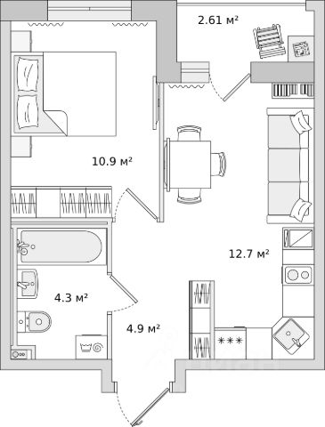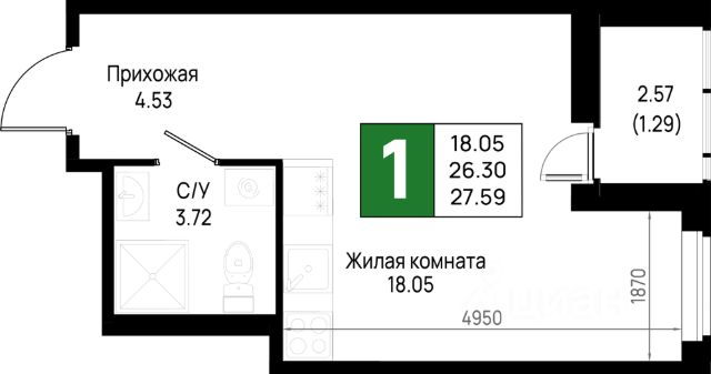 • ✅ Минимальная площадь: 26,9 м²