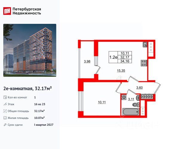 Продается уютная 1-комнатная квартира от застройщика в жилом комплексе "Город звезд" в новом городе на правом берегу Невы. До метро можно добраться на транспорте всего за 13 минут. Удобная, классическая, функциональная европланировка, большая кухня-гостиная 14.31 м², вместительная прихожая 3.84 м². Общая площадь квартиры - 30.9 м², жилая 8.44 м², высота потолка 2.77 м. Квартира продается с отделкой "NORD LINE SILVER". Что особенного в ЖК "Город звезд"? • Инновационный Лицей Setl с оригинальной архитектурной концепцией и уникальной образовательной средой • Невский лесопарк под окнами - всегда свежий воздух и полноценный отдых на природе • Четыре тематические площади отдыха с разнообразным благоустройством • Аллея Звёзд - променад протяженностью 5 км с ландшафтным озеленением, зонами отдыха и велодорожкой • Выход на набережную реки Утки, где можно порыбачить или взять напрокат лодку • Единая входная группа с ресепшен и подземный паркинг