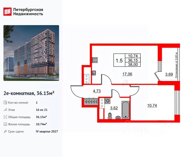 • ✓ В базе Циан 42 1-комнатных квартир на 16 этаже рядом с метро Рыбацкое