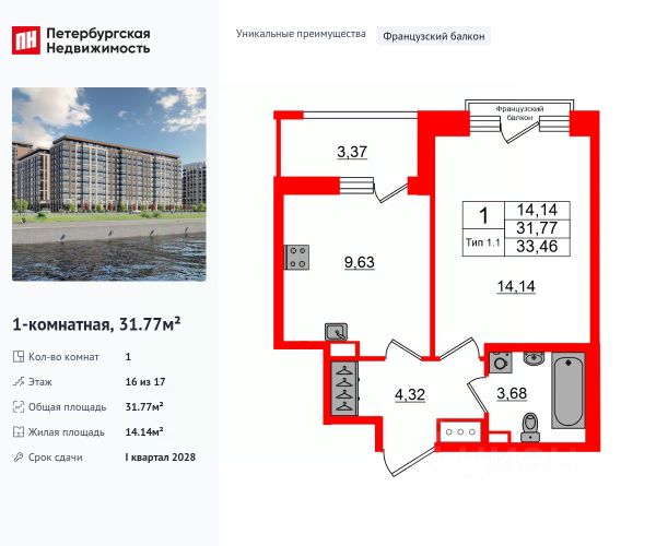 Цена со скидкой до 30% в прямой продаже от застройщика — только в этом месяце. При покупке апартаментов - паркинг за полцены. На все апартаменты действует беспроцентная рассрочка. Купите на распродаже! Покупка недвижимости в Zoom на Неве сейчас со скидкой до 30% позволит через 2 года получить доход до 6 300 000 руб. Роскошные виды на Неву. 1-к апартамент в комплексе класса бизнес-лайт Zoom на Неве на 16-м этаже. Общая площадь 42,47. Предчистовая отделка. Zoom на Неве расположен в новом месте силы рядом с центром города на первой линии Октябрьской набережной в Невском районе, всего в 7 км от исторической части Санкт-Петербурга. Большой выбор эргономичных и максимально продуманных планировок позволит каждому найти вариант по душе. Панорамные виды на Неву, благоустроенные дворы, детская игровая комната, подземный паркинг, коммерческие зоны на первом этаже, это и многое другое делает Zoom на Неве идеальным местом для жизни. Особенности: - Панорамные виды на Неву и город; - 10 мин. до Парка Строителей, 15 мин. до Лондон-молла, Ленты, Максидома, 15 мин. до метро "ул. Дыбенко", 12 мин. до КАД, 10 мин. до центра; - Единая архитектурная концепция. Сдержанные и монументальные фасады в неоклассическом стиле; - Парадный лобби для жильцов. Единый вход в комплекс с администратором, зоной ресепшн и охраной, зоной для бесконтактной доставки посылок и еды; - Подземный отапливаемый паркинг с доступом из парадной; - Доступно 3 варианта отделки на выбор: черновая, предчистовая (White Box) и чистовая; - Зоны отдыха для взрослых и детей, Wi-Fi-покрытие во дворе и в паркинге, зоны для питомцев, арт-объекты и много другое. В шаговой доступности вся необходимая инфраструктура от детских садов и школ до супермаркетов и салонов красоты; - Все происходящее контролируется видеокамерами, а покой внутренней территории и безопасность ваших детей гарантируется полным отсутствием транспорта во дворах в концепции "без машин".